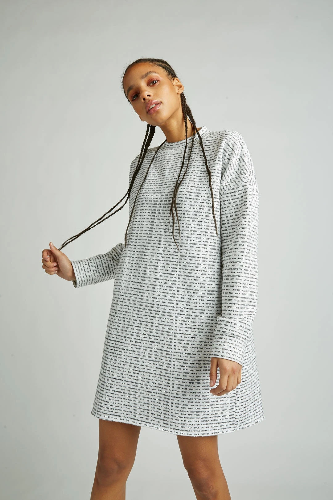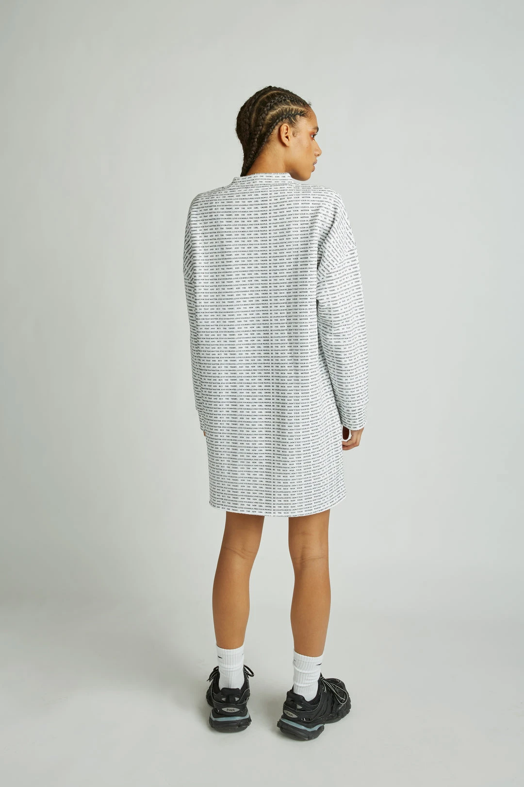 The infamous NGO manifesto still matters! The Manifesto Repeat Sweatshirt Dress is perfect for your daily dose of positivity! Be who you are and know that you can be who you want to be! And look stylish AF whilst doing so. Pair with the Manifesto Repeat Joggers for the maximum comfort levels any day of the week.