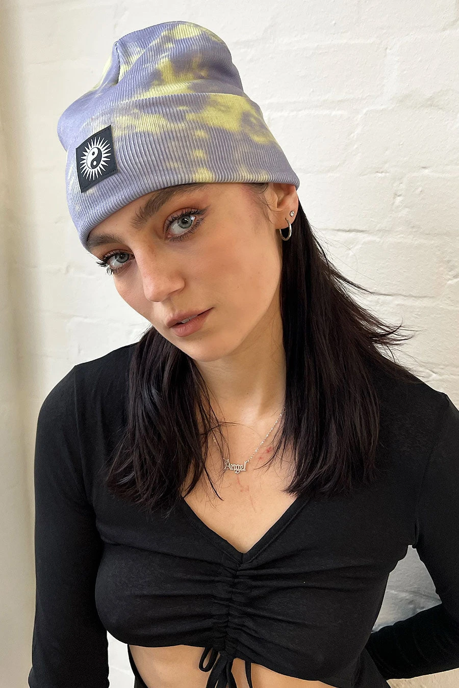 New Girl Order RIBBED BEANIE WITH OVER IT BADGE DETAIL – BLUE Tops