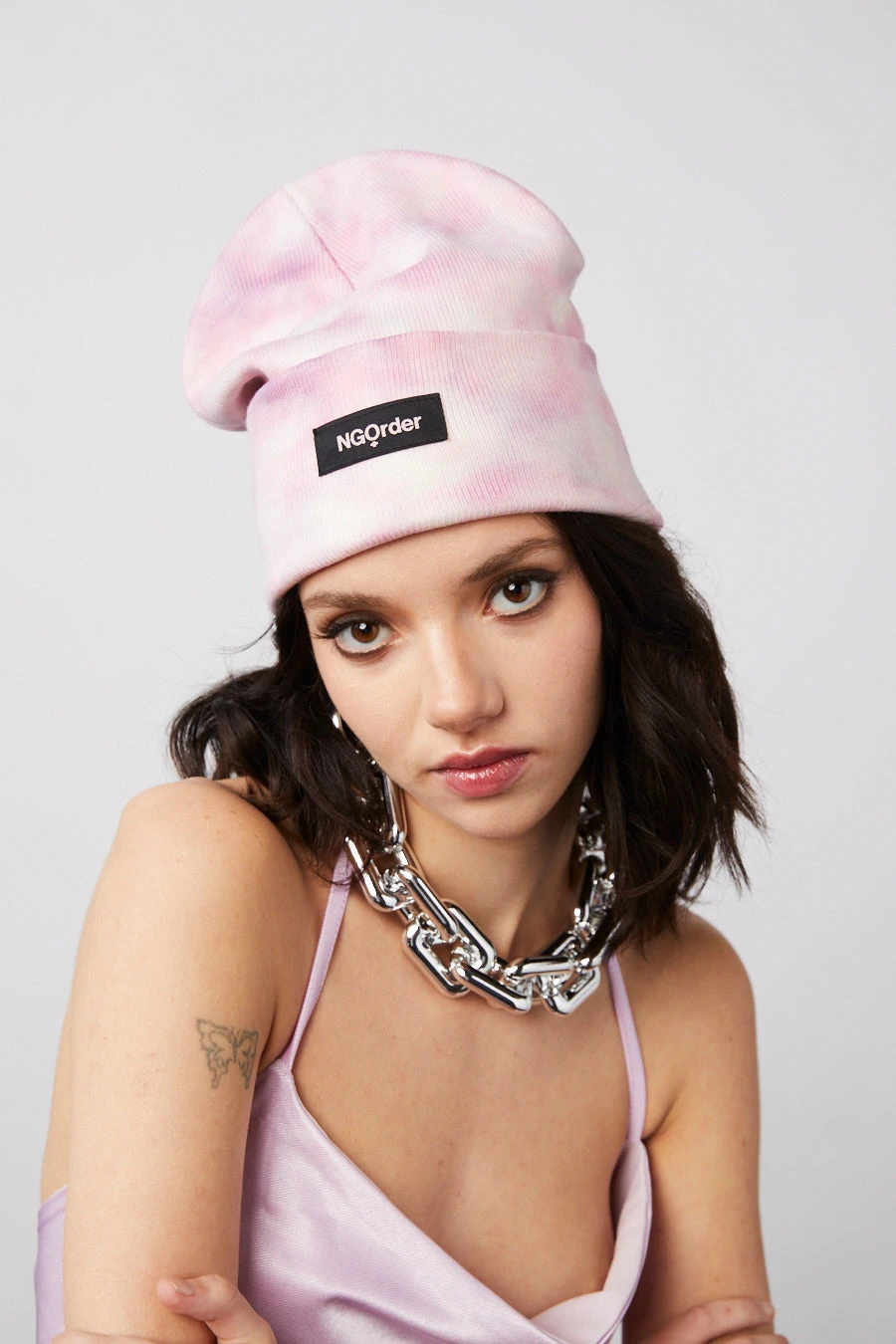 New Girl Order RIBBED TIE DYE BEANIE WITH BADGE DETAIL – OATMEAL