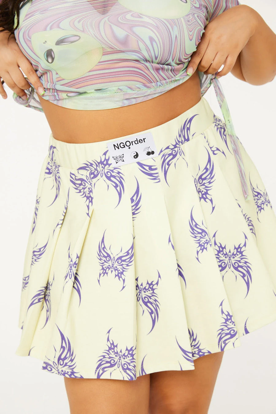 Be the first to review “New Girl Order Tops TATTOO BUTTERFLY PLEATED SKIRT CURVE” Cancel reply